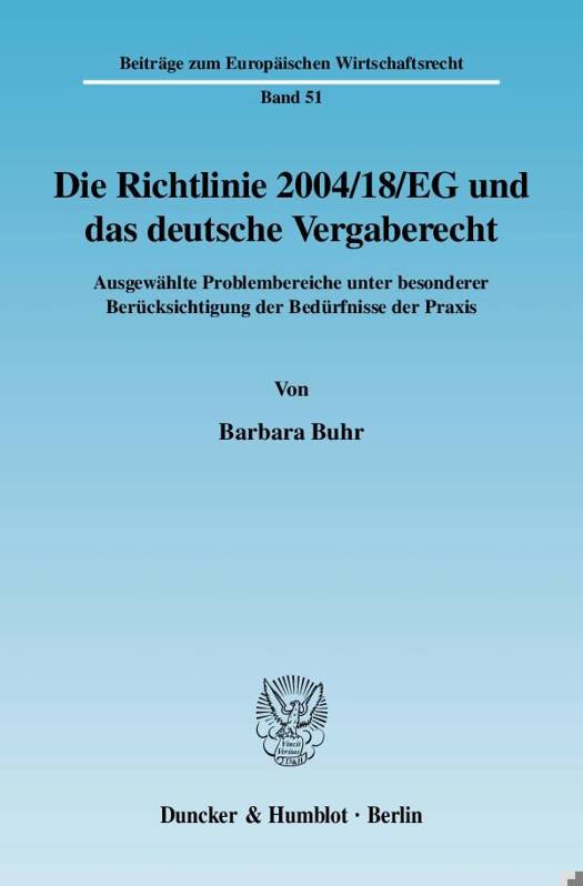 Die Verfasserin untersucht die Umsetzung der klassischen Vergabekoordinierungsrichtlinie 2004/18/EG in das deutsche Vergaberecht. Barbara Buhr setzt sich insbesondere mit den Voraussetzungen einer Ausschreibungspflicht, Ausnahmen vom Anwendungsbereich des Vergaberechts und neuen Vergabeverfahren sowohl in der europäischen Richtlinie als auch in den nationalen vergaberechtlichen Bestimmungen auseinander. Die Umsetzung in nationales Recht wird vor allem im Hinblick auf Vollständigkeit, Effektivität und die Übereinstimmung mit den europäischen Vorgaben und höherrangigem nationalen Recht sowie praktische Bedürfnisse bewertet. Auch die europäischen Richtlinienbestimmungen selbst werden einer kritischen Betrachtung unterzogen. Zudem geht die Autorin auf Kernprobleme im Zusammenhang mit der Systematik des nationalen Vergaberechts, dem vergaberechtlichen Rechtsschutz und den diesbezüglichen Regelungsmöglichkeiten ein.
