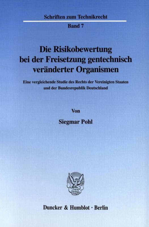 Siegmar Pohl vergleicht Recht und Praxis beim Umgang mit technischen Risiken in den USA und in Deutschland am Beispiel von Freisetzungen gentechnisch veränderter Organismen.