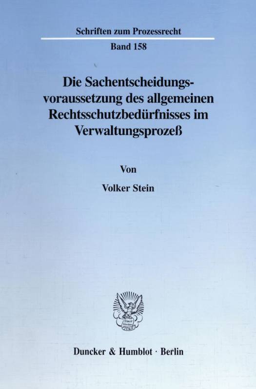 Stein versucht daher, das allgemeine Rechtschutzbedürfnis verfassungsrechtlich zu legitimieren und verwaltungsprozessual exakt zu definieren. Alsdann wird das allgemeine Rechtsschutzbedürfnis abgegrenzt gegenüber ihm thematisch nahekommenden, anderen Problemkreisen bei der Zulässigkeit eines Rechtsbehelfs. Schließlich wird eine Systematik von Konstellationen herausgearbeitet, in denen das allgemeine Rechtsschutzbedürfnis Probleme aufwirft bzw. zu verneinen ist.