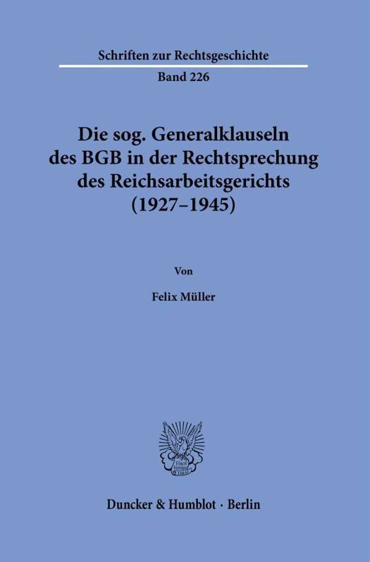English summary: The So-Called General Clauses of the German Civil Code in the Case Law of the Reich Labor Court (1927-1945) The thesis analyzes the case law of the Reich Labor Court (Reichsarbeitsgericht) on the basis of the so-called general clauses of the German Civil Code (Burgerliches Gesetzbuch) and the undefined legal concepts contained therein, such as good faith or common decency. The undefined legal concepts were particularly suitable for highlighting any changes in the Reich Labor Court's case law. German description: Die Arbeit untersucht die Rechtsprechung des Reichsarbeitsgerichts anhand der sog. Generalklauseln des BGB. Im Vordergrund steht hierbei die Frage, welchen gesellschaftlichen und politischen Einfluss das damals hochste deutsche Arbeitsgericht wahrend der Zeit seines Bestehens (1927-1945) hatte, oder ob es selbst solchen Einflussen unterworfen war. Fur die umfassende Analyse boten sich die in den Generalklauseln enthaltenen unbestimmten Rechtsbegriffe wie Treu und Glauben oder die guten Sitten an, da gerade sie der Auslegung durch die Rechtsprechung bedurfen und grundsatzlich wertungsoffen sind. Die Arbeit zeigt auf, dass die Rechtsprechung des Reichsarbeitsgerichts ein soziales Ideal verwirklichte. Ferner legt sie dar, ob und in welchem Umfang die Begriffe wie Treu und Glauben, gute Sitten, etc. Einfallstore fur die NS-Ideologie in die Rechtsprechung des Reichsarbeitsgerichts nach der sog. Machtergreifung durch die Nationalsozialisten im Jahr 1933 waren.