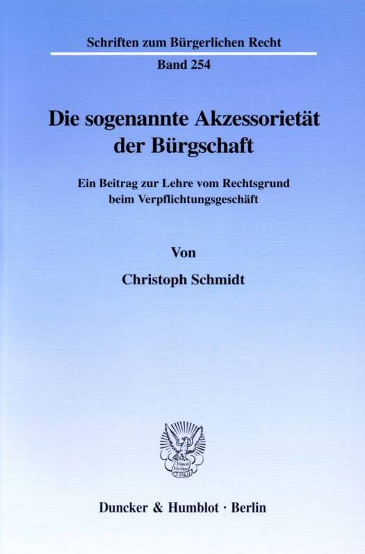 Im ersten Teil stellt Christoph Schmidt zunächst die verschiedenen Auffassungen zur Grundlage der Akzessorietät der Bürgschaft dar. Im Anschluß wird dann aufgezeigt, daß das herkömmliche Verständnis eine Reihe ausgewählter Fallgestaltungen nicht schlüssig zu erklären vermag. Hierauf aufbauend gibt der Autor im zweiten, dem Hauptteil der Arbeit, eine eigene Vorstellung davon, was unter "Akzessorietät" bei der Bürgschaft zu verstehen ist. Dabei geht er vom Schuldversprechen aus und untersucht eingehend die umstrittene Frage, was unter dem Rechtsgrund beim Verpflichtungsgeschäft sowie unter "Kausalität" bzw. "Abstraktion" zu verstehen ist. Die hierbei gewonnenen Ergebnisse überträgt Christoph Schmidt auf die Bürgschaft und er kommt zu dem Schluß, daß Akzessorietät und Kausalität der Bürgschaft gleichzusetzen seien. Im dritten Teil verteidigt der Autor seine Vorstellung von der Akzessorietät gegen mögliche Kritik. Außerdem zeigt er anhand der im ersten Teil angesprochenen Fallgestaltungen sowie der Bürgschaft auf erstes Anfordern auf, welche Vorteile sein Konzept im Vergleich zum herkömmlichen bietet.