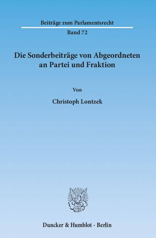 Christoph Lontzek beschreibt die Entwicklung der Sonderbeiträge und stellt deren rechtliche Grundlagen dar. Anschließend untersucht er die verfassungsrechtliche Vereinbarkeit der Sonderbeiträge von Abgeordneten anhand der Normen des Grundgesetzes und geht auf unionsrechtliche und landesrechtliche Abweichungen gesondert ein. Der Autor kommt zu dem Ergebnis, dass die Beitragsleistungen verfassungsgemäß sind, soweit sie nicht eine bestimmte Höhe überschreiten und soweit sie mit vorheriger Zustimmung des Abgeordneten an Partei oder Fraktion abgeführt werden. Die Berücksichtigung der Mandatsträgerbeiträge bei der staatlichen Parteienfinanzierung und deren steuerliche Begünstigung sind in ihrer derzeitigen Form verfassungswidrig. Unabhängig von den verfassungsrechtlichen Mindestanforderungen regt Lontzek an, die Parteienfinanzierung durch Abgeordnete gesetzlich zu begrenzen und die private Fraktionsfinanzierung insgesamt zu verbieten.