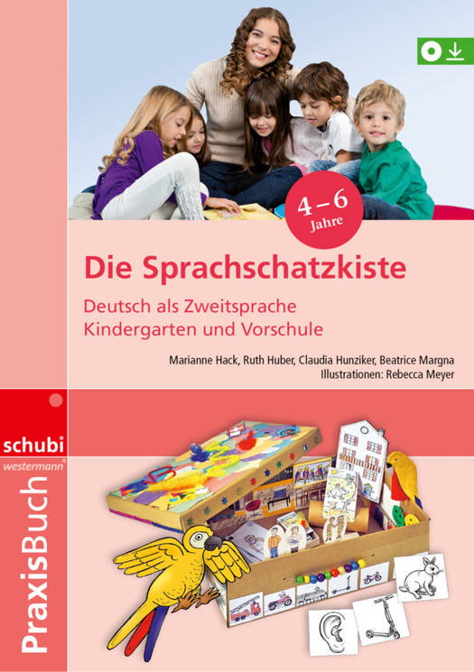 Wie bringt man Kindern, die noch nicht lesen und schreiben können, Deutsch bei? Mit der Sprachschatzkiste liegt ein praktisches Werk vor, das die Lehrperson bei der Arbeit mit fremdsprachigen oder Dialekt sprechenden Kindern unterstützt und zahlreiche Anregungen für den Unterricht bietet. Die bezaubernde Idee der sich laufend verändernden Sprachschatzkiste ermöglicht den Kindern, ihren Sprachschatz buchstäblich wachsen zu sehen. Dafür braucht es natürlich einen gebührenden Aufbewahrungsort: Eine Schatzkiste. Ursprünglich ein leerer Schuhkarton, verwandelt sich die Schachtel nach und nach in eine ausgeschmückte Sprachschatzkiste mit mehr und mehr Inhalt. Nicht nur Kinder mit einer fremden Muttersprache profitieren, sondern auch Dialekt sprechende Kinder. Die fröhliche Leitfigur Papagei Pia begleitet und unterstützt die Kinder beim Erlernen der neuen Sprache. Themenbereiche: Im Kindergarten - Körper, Sinne, Gefühle - Essen - Waldtiere, Nikolaus - Wohnen - Familie - Natur - Verkehr - In der Schule - Zauberknäuel.