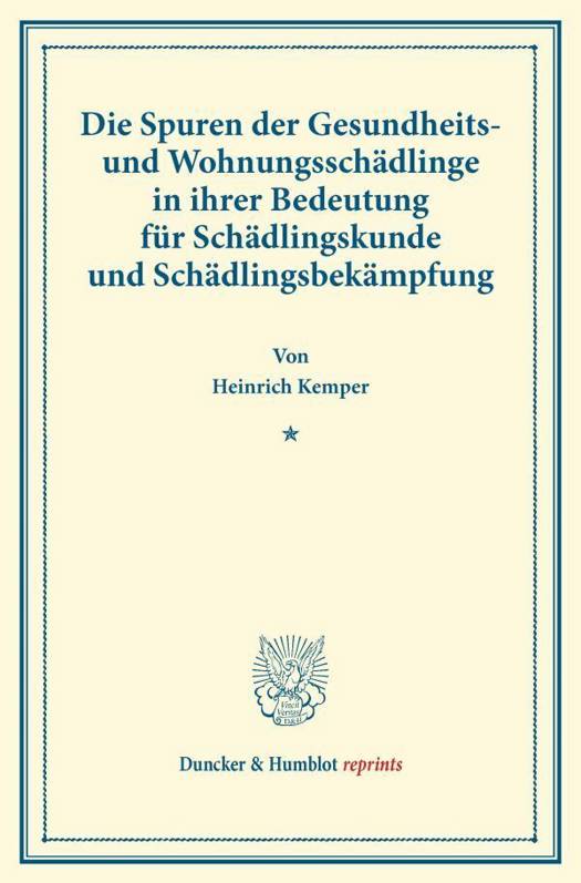 Heinrich Kemper liefert mit seiner Arbeit »Die Spuren der Gesundheits- und Wohnungsschädlinge in ihrer Bedeutung für Schädlingskunde und Schädlingsbekämpfung« aus dem Jahr 1941 eine Anleitung zur Spurensuche bei Schädlingsbefall.