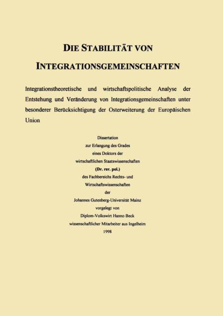 Der Autor erarbeitet ein Integrationskonzept, dessen primäres Ziel die Stabilität internationaler Zusammenschlüsse ist, und wendet dieses auf die Osterweiterung der Europäischen Union an.