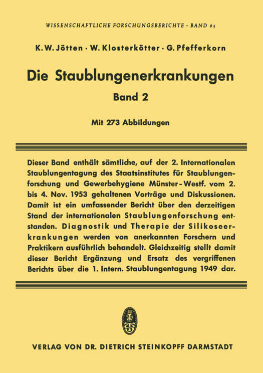 Bericht Über Die 2. Internationale Staublungen-Tagung Des Staatsinstitutes Für Staublungenforschung Und Gewerbehygiene Beim Hygiene-Institut Der Westfälischen Wilhelms-Universität Münster/Westf. Vom 2. Bis 4. Nov. 1953