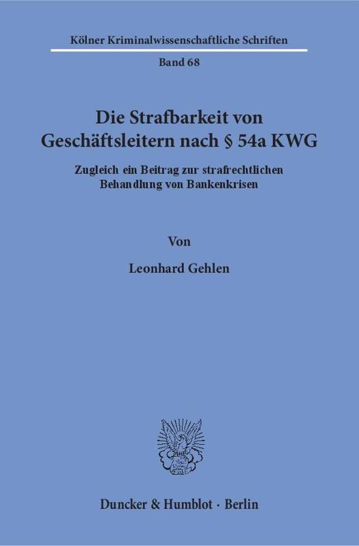 Die Empörung über das Geschäftsgebaren zahlreicher Finanzakteure war groß, als vor rund zehn Jahren das Ausmaß der Finanzkrise deutlich wurde. Nennenswerte Verurteilungen blieben im Nachgang der Krise jedoch aus. Der Gesetzgeber führte das unter anderem auf eine Lücke im geltenden Strafrecht zurück und schuf in Reaktion auf eine solche 54a KWG. Doch stellt diese neue Strafvorschrift eine sinnvolle Ergänzung des vorhandenen Normenbestandes dar?Zur Beantwortung dieser Frage leuchtet die Arbeit zunächst die volkswirtschaftlichen und strafrechtlichen Hintergründe aus, die zur Schaffung des 54a KWG geführt haben. Anschließend wird die neue Strafnorm erstmals umfassend dogmatisch gedeutet. Sie wirft eine Fülle teils rechtsgebietsübergreifender Fragen auf, welche auch über die einzelne Norm hinaus von Relevanz sind. Die Arbeit bezieht schließlich Stellung dazu, was das Strafrecht allgemein und 54a KWG im Besonderen mit Blick auf künftige Bankenkrisen leisten kann. Dabei werden auch Möglichkeiten jenseits des geltenden Rechts ausgelotet.Die Dissertation wurde mit dem Promotionspreis 2017 für Strafrecht der Rechtwissenschaftlichen Fakultät der Universität zu Köln ausgezeichnet.