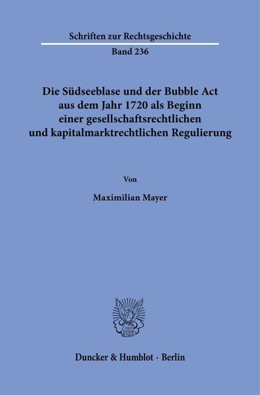 Spekulationsblasen sind seit Jahrhunderten ein fester Bestandteil der Wirtschafts- und Finanzgeschichte. Beginnend mit der Tulpenblase über die Südseeblase und den Gründerkrach bis hin zur Dotcom- und Kryptoblase lassen sich immer wieder vergleichbare Marktphasen erkennen. Die Südseeblase sticht hierbei besonders hervor, steht jedoch bis heute - zu Unrecht, wie die vorliegende Arbeit darlegt - sowohl in der Wissenschaft als auch in der breiten Öffentlichkeit im Schatten der bekannteren Tulpenblase. Die Südseeblase stellt nicht nur ein einschneidendes Ereignis für die gesellschaftsrechtliche und kapitalmarktrechtliche Entwicklung in Großbritannien dar, sondern ist auch ein Paradebeispiel für die Gier und menschliche Psychologie im Wirtschaftssystem. Daneben lässt sich an der Südseeblase in beeindruckender Weise die politische Lage der damaligen Zeit sowie die Herausforderungen der noch jungen parlamentarischen Monarchie nachzeichnen - es verwundert insoweit nicht, dass mit Robert Walpole der erste Premierminister Großbritanniens aus der Südseeblase hervorgegangen ist. Die vorliegende Arbeit versucht dabei die Vorgänge um die Südseeblase in einen juristischen, aber auch interdisziplinären Kontext zu setzen, ohne dabei aktuelle Bezüge - die es reichlich gibt - zu vernachlässigen.