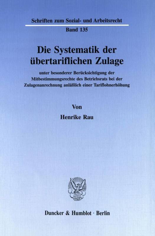 Die Frage nach der Abbaubarkeit übertariflicher Zulagen hat in den letzten Jahren angesichts der gewandelten wirtschaftlichen Situation zunehmend an Bedeutung gewonnen. Da zwei Entscheidungen des Großen Senats des Bundesarbeitsgerichts vom 3.12.1991 die Diskussion nur auf den ersten Blick zu einem Abschluß gebracht, in Wirklichkeit aber viele Fragen offen gelassen bzw. weitere aufgeworfen haben, ist dieser Gegenstand weiterhin von hoher Aktualität und großer praktischer Bedeutung.Die Arbeit erstellt erstmals eine Systematik der übertariflichen Zulage und ordnet bisher noch ungeklärte Punkte in das System des Arbeitsrechts ein. Der erste Hauptteil widmet sich der rechtlichen Ausgestaltung übertariflicher Zulagen im Individualarbeitsvertrag, in Allgemeinen Arbeitsbedingungen, Betriebsvereinbarungen und Tarifverträgen. Dabei steht die Frage nach Möglichkeiten der Beseitigung übertariflicher Bezahlung im Vordergrund. Der Schwerpunkt der Arbeit liegt im zweiten Hauptteil. Dieser befaßt sich mit Beteiligungsrechten des Betriebsrats in bezug auf übertarifliche Zulagen. Kernstück ist die Überprüfung von Mitbestimmungsrechten des Betriebsrats aus 87 I Nr. 10 BetrVG bei der Anrechnung oder Weitergabe einer Tariflohnerhöhung.Dabei entwickelt die Verfasserin einen eigenen Lösungsansatz, wonach das Mitbestimmungsrecht des Betriebsrats entgegen der Auffassung des BAG nicht an die Anrechnung, sondern erst an die Neuverteilung des nach mitbestimmungsfreier Kürzung zur Verfügung stehenden Zulagevolumens anknüpft. Diese Auffassung hat gegenüber der des BAG den entscheidenden Vorteil, daß eine klare Trennung zwischen mitbestimmungsfreier Arbeitgebervorgabe und mitbestimmungspflichtiger Arbeitgebermaßnahme unproblematisch möglich ist.