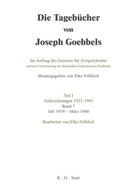 7. Die Tagebücher von Joseph Goebbels, Band 7, Juli 1939 - März 1940
