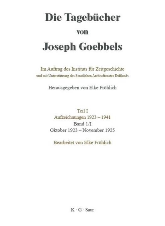 Die Tagebücher von Joseph Goebbels, Band I, Oktober 1923 - November 1925