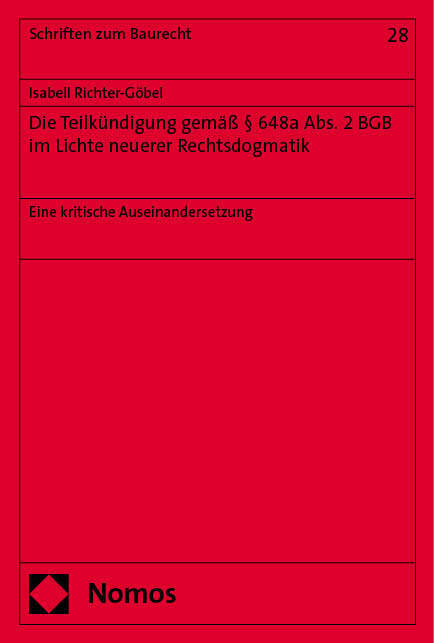 Im Zuge der Reform des Bauvertragsrechts 2018 wurde neben einer Kündigung aus wichtigem Grund des gesamten Vertrages die Möglichkeit zur Teilkündigung gesetzlich in 648a Abs. 2 BGB implementiert. Das Werk erörtert die Chancen und Risiken in der Anwendung der Teilkündigung. Neben der dogmatischen Einordnung des Rechtsinstituts erfolgt eine Analyse der Voraussetzungen und Rechtsfolgen der Regelung des 648a Abs. 2 BGB und ihrer Problemfelder. Daran anknüpfend wird die Übertragbarkeit dieser Möglichkeit auf andere Kündigungsrechte wie die freie Teilkündigung gemäß 648 BGB untersucht. Zudem wird auf die Folgen einer unwirksamen Teilkündigung nach 648a Abs. 2 BGB eingegangen, um diesen Risiken in der Vertragsgestaltung zu begegnen.