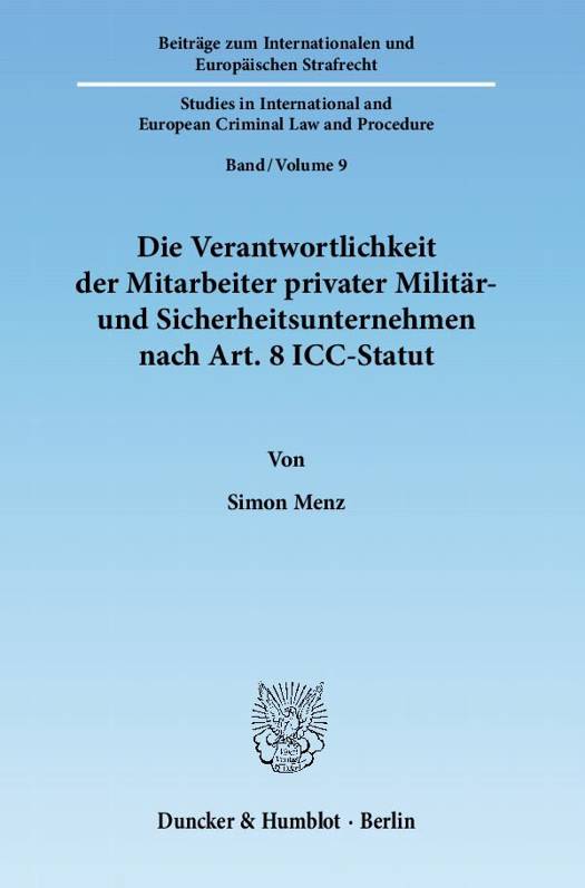 Seit dem Ende des Kalten Krieges hat mit der Privatisierung von bewaffneten Konflikten in Form des outsourcing militärischer und sicherheitsbezogener Tätigkeiten eine neue Ära begonnen. Diese Entwicklung stellt zwar zunehmend das staatliche Gewaltmonopol in Frage, sie ist aber nicht mehr aufzuhalten, da sich dieser riesige Markt für private Militärdienstleistungen schon längst fest etabliert hat. Die Mitarbeiter privater Militär- und Sicherheitsunternehmen (PMCs/PSCs) umgibt hierbei ein gewisses Mysterium, das maßgeblich durch die vielen Gerüchte um ihre Straflosigkeit und die angebliche "Grauzone", in der sie sich bewegen sollen, genährt wird. Die Untersuchung konnte allerdings aufzeigen, dass grundsätzlich zumindest das existierende völkerstrafrechtliche Regelungsregime ausreichend ist, um Kriegsverbrechen durch PMC/PSC-Angehörige angemessen zu sanktionieren. Obwohl sie überwiegend den Status einer Zivilperson im humanitären Völkerrecht einnehmen, sind sie dennoch an die in Art. 8 Abs. 2 ICC-Statut aufgeführten Kriegsverbrechenstatbestände gebunden. Zudem bietet Art. 28 ICC-Statut grundsätzlich die Möglichkeit auch die Geschäftsführung der Unternehmen für Kriegsverbrechen ihrer Mitarbeiter zur Verantwortung zu ziehen. Die Jurisdiktionsgewalt des ICC ist allerdings, insbesondere durch das Komplementaritätsprinzip, empfindlich eingeschränkt.