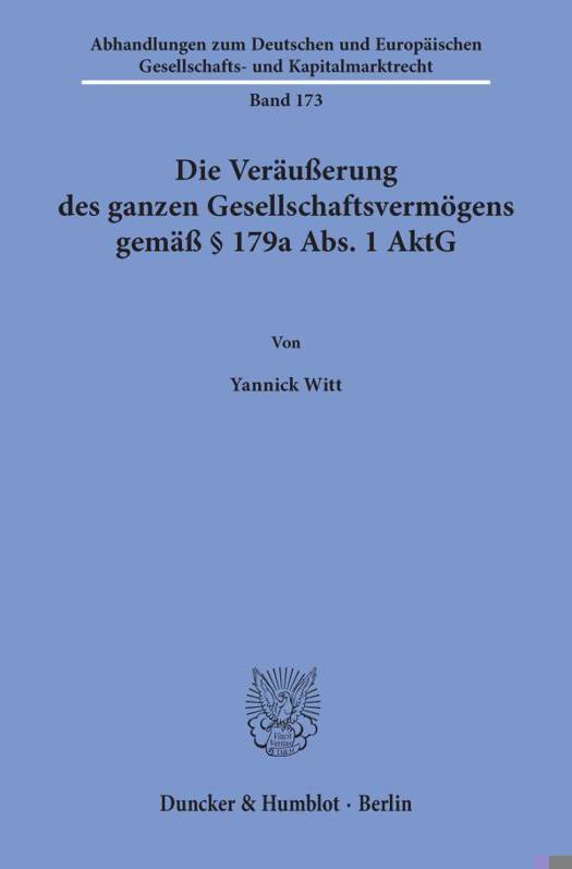 Der erste Vorganger des heutigen 179a AktG, der Gesamtvermogensgeschafte einer Aktiengesellschaft von der Zustimmung der Hauptversammlung abhangig macht, findet sich bereits im HGB 1900. Nichtsdestotrotz ist es der Rechtsprechung und Literatur nur sehr bedingt gelungen, greifbare Kriterien zur Bestimmung des ganzen Gesellschaftsvermogens herauszuarbeiten. Daher ist die Vorschrift nach wie vor Diskussionsgegenstand, wie das 2019 ergangene BGH-Urteil zur analogen Anwendung auf die GmbH zeigt. Die Arbeit weist zunachst nach, dass der Schutzzweck der Norm sich nicht auch auf den Vermogensschutz erstreckt, sondern sich allein in der Dispositionsfreiheit der Aktionare erschopft. Ausgehend von diesem Verstandnis werden qualitative Kriterien herausgearbeitet, anhand derer das ganze Gesellschaftsvermogen zu bestimmen ist. Nahezu alle in der Diskussion befindlichen Folgeprobleme der Norm lassen sich anschlieaend auf die dort gewonnenen Auslegungsergebnisse zuruckfuhren.