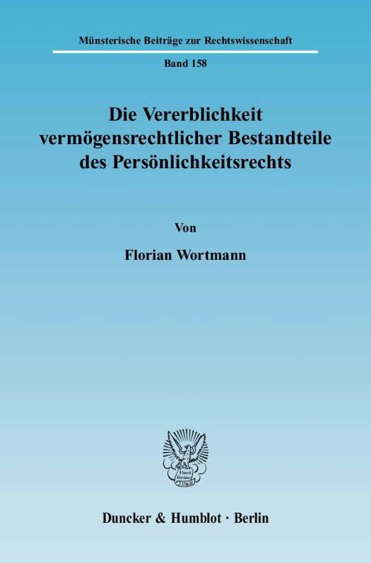 Der BGH hat in seinen Entscheidungen "Marlene-Dietrich" und "Blauer Engel" erstmals die Vererblichkeit "vermögenswerter" Elemente des Persönlichkeitsrechts festgestellt und davon ausgehend der Erbin Schadensersatz zugesprochen. Florian Wortmann sucht die aufgeworfenen Fragen zu den dogmatischen Grundlagen der Vererbung zu beantworten, die maßgeblichen Strukturen einer vermögensrechtlichen Komponente des Persönlichkeitsrechts zu entwickeln und die konkrete Handhabung erbrechtlicher Vorschriften und Gestaltungsmöglichkeiten in diesem Kontext aufzuzeigen.