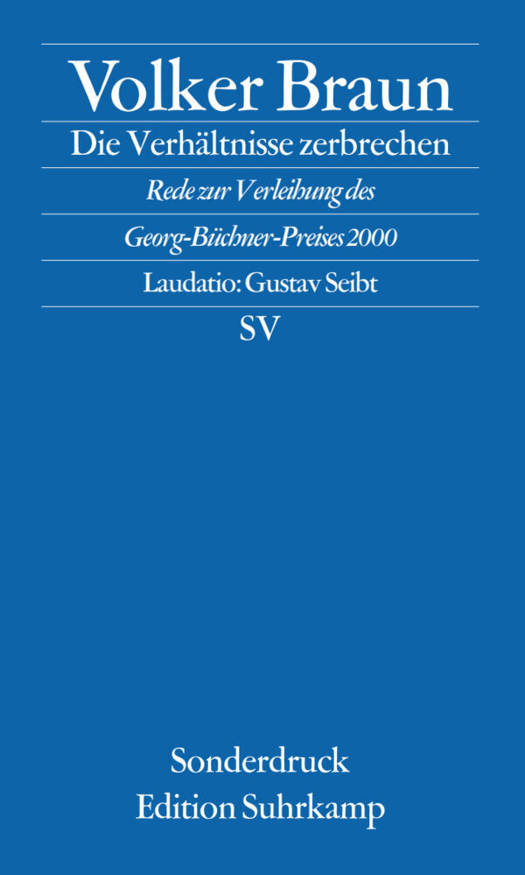 "Ich habe Vorjahren, unter anderen Verhältnissen, Büchner zitiert, um einen Sprengsatz zu legen; jetzt in seinem Namen herzitiert zu sein, muß mich wieder unterminieren. Ich stehe vor Ihnen auf dem gefährlichen Boden, wo man Stellung bezieht, wo Absichten wurzeln, wo ein Narr die Arbeit macht, der scheitern will, und Gelingen ist Scheitern."