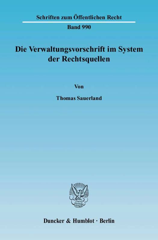Die Verwaltungsvorschriften sind seit der konstitutionellen Staatsrechtslehre des 19. Jahrhunderts zu einem Dauerthema des Öffentlichen Rechts geworden. Stand vormals ihre Rechtsnatur im Mittelpunkt dogmatischen Interesses, werden sie nunmehr mit dem Topos der verwaltungsgerichtlichen Kontrolldichte in einen größeren Zusammenhang gestellt. Die Erörterungen hierzu haben bis heute nicht zu endgültigen Lösungen geführt, weshalb Thomas Sauerland das Rechtsinstitut der Verwaltungsvorschrift einer umfassenden Konturierung unterzieht.Zunächst geht er auf die Bindungswirkung der Verwaltungsvorschriften aus der Vollzugsperspektive der Administrative ein. Daran schließen sich Untersuchungen über die Verbindlichkeit dieser exekutiven Rechtsnormen aus der Handlungsperspektive der Exekutive, der Kontrollperspektive der Judikative und der Vollzugsadressatenperspektive Dritter an. Zuletzt werden die Implikationen der Verwaltungsvorschriften in ausgewählten Teilrechtsgebieten wie dem Staatshaftungsrecht, dem Strafrecht, dem Zivilrecht und dem Europarecht einer Lösung zugeführt.