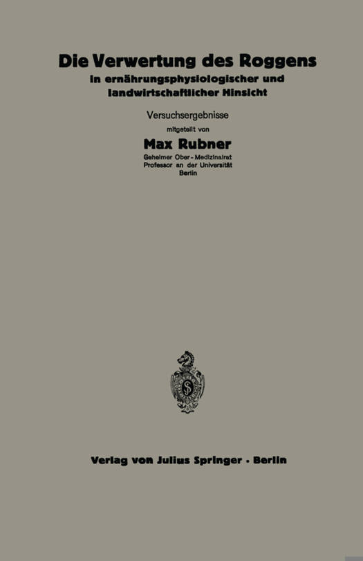 Die Verwertung Des Roggens in Ernährungsphysiologischer Und Landwirtschaftlicher Hinsicht