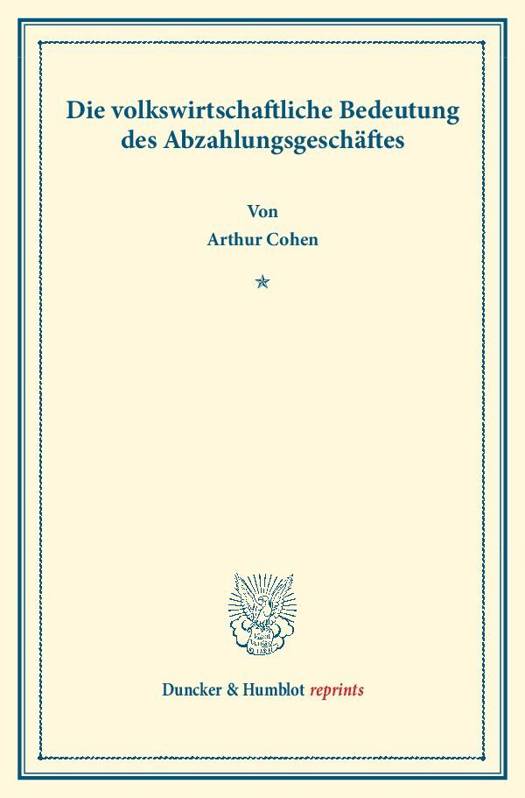 Die Volkswirtschaftliche Bedeutung Des Abzahlungsgeschaftes