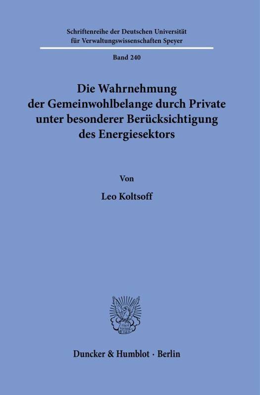 Die Energieversorgung ist auch vor dem Hintergrund der aktuellen klimapolitischen Herausforderungen von essenzieller Bedeutung. Die Frage der Verteilung der Aufgabenwahrnehmung zwischen Staat und Gesellschaft sowohl allgemein als auch insbesondere in der Energiewirtschaft ist eine solche, welche die Wissenschaft seit langem beschaftigt. In Anbetracht dessen, widmet sich diese Untersuchung der Folgefrage danach, wie Private an das Gemeinwohl gebunden werden, wenn sie Gemeinwohlbelange im Energiesektor wahrnehmen. Die Regulierung ist ein zentrales Instrument zur Gemeinwohlbindung privater Tatigkeit, woraus sich hier die Fragestellung ergibt, die dahingeht, die Gemeinwohlbindungen im Energierecht zu analysieren, denkbare Optimierungsoptionen (u.a. einer weiteren Einbindung von Privaten in die Aufgabenerfullung) aufzuzeigen, sowie zu analysieren, ob der aktuelle Regulierungsrahmen zur Sicherung der Aufgabenerfullung durch Private im Sinne einer Gemeinwohlverwirklichung geeignet ist.