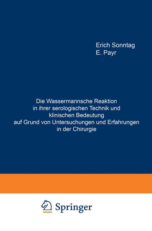 Die Wassermannsche Reaktion in Ihrer Serologischen Technik Und Klinischen Bedeutung Auf Grund Von Untersuchungen Und Erfahrungen in Der Chirurgie