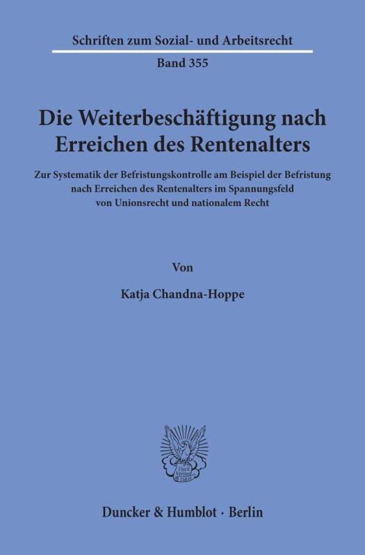 Die Arbeit befasst sich mit der arbeits- und sozialrechtlichen Ausgestaltung der Weiterbeschaftigung nach Erreichen des Rentenalters. Aufgrund der zunehmenden Bedeutung der freiwilligen verlangerten Erwerbstatigkeit sind in den letzten Jahren verschiedene gesetzliche Regelungen sowie hochstrichterliche Entscheidungen in diesem Kontext ergangen. Die Arbeit greift diese Entwicklungen auf und untersucht die rechtliche Ausgestaltung der Weiterarbeit grundlegend. Im Zentrum steht die Befristungsregelung fur Arbeitnehmer im Rentenalter, die den Ausgangspunkt einer dogmatischen Untersuchung der Systematik des unionsrechtlichen und nationalen Befristungsrechts bildet. Die geltende Regelung wird in systematischer Hinsicht eingeordnet und erstmals auch aus rechtsvergleichender und rechtsokonomischer Perspektive analysiert. Auf Grundlage der gewonnenen Erkenntnisse pladiert die Autorin fur eine differenzierende Ausgestaltung und entwirft Ansatze fur eine langfristige Rechtsentwicklung.