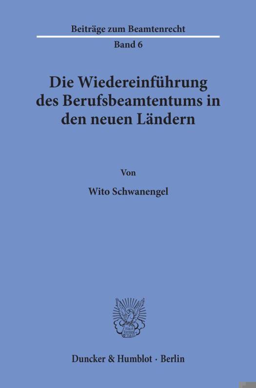 Ausgehend von den staatstheoretischen und normativen Grundlagen des Staatsdienstes in der DDR, beschäftigt sich der Autor im ersten Teil ausführlich mit dem Typ des sogenannten Bewährungsbeamten, wobei er sich vor allem kritisch mit zahlreichen Einzelregelungen dieser beitrittsveranlaßten Form zur Wiedereinführung des Beamtentums auseinandersetzt und deren Folgewirkungen darstellt. Anhand einer kontroversen Bestimmung des Funktionsvorbehalts untersucht Wito Schwanengel weiterhin die Verbeamtungspraxis der neuen Länder und illustriert am Beispiel der Lehrer die problematische Begrenzung des Beamteneinsatzes auf Kernbereiche hoheitlicher Aufgaben. Dabei wird auch auf Modelle zur obligatorischen Einstellungsteilzeit eingegangen und die Frage ihrer Verfassungsmäßigkeit erörtert. Ein weiterer Teil des Buches beschäftigt sich mit den Besonderheiten des Besoldungs- und Versorgungsrechts und ihrer Vereinbarkeit mit dem Grundsatz amtsangemessener Alimentation. Letztlich widmet sich der Autor sehr eingehend den sehr unterschiedlichen Konzepten der Landesbeamtengesetze zur Verhinderung einer Verbeamtung wegen früherer Tätigkeit für das MfS oder in herausgehobenen Partei- und Staatsfunktionen.