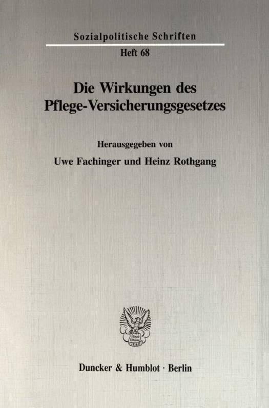 Nach einer langen und kontrovers geführten Diskussion wurde das »Gesetz zur sozialen Absicherung des Risikos der Pflegebedürftigkeit« verabschiedet und am 28. Mai 1994 im Bundesgesetzblatt veröffentlicht. Ziel des vorliegenden Bandes ist eine »Standortbestimmung« bezüglich dieser neuen, fünften Säule der Sozialversicherung. Mit dem Sammelband soll ein Beitrag zu einer sachlichen und realitätsbezogenen Diskussion geleistet werden, die im Vorfeld allzuoft nicht stattgefunden hat. Grundgedanke der Beiträge ist es daher, das Pflege-Versicherungsgesetz als datum zu nehmen und seine erwartbaren Wirkungen und die sich daraus ergebenden sozial-, verteilungs- und wirtschaftspolitischen sowie sozialrechtlichen Handlungserfordernisse zu diskutieren und nicht über ideale Lösungen zur Absicherung des Pflegerisikos nachzudenken und dabei bereits »geschlagene Schlachten« wieder aufleben zu lassen.