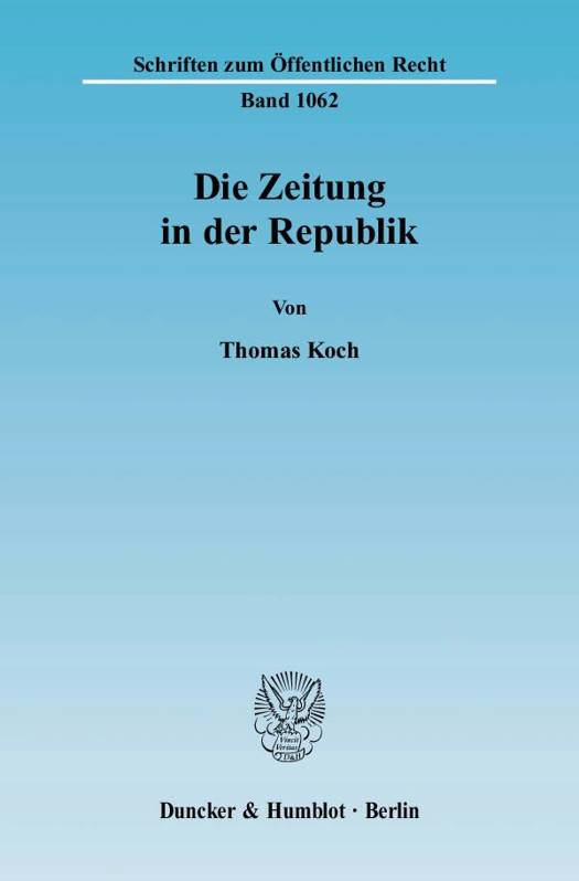 Wissenschaftlicher Ansatzpunkt dieser Erörterung ist die Lehre von der Republik, welche Freiheit voraussetzt. Dieser republikanische Freiheitsbegriff bildet die Basis für den Entwurf einer republikanischen Zeitungsverfassungslehre: Neben den Grundlagen des deutschen Grundgesetzes zur Pressefreiheit ist zu fragen, wie eine mögliche öffentliche Aufgabe der Zeitung in der Republik aussehen könnte. Aspekte der "inneren Pressefreiheit" sind ebenso wie der Topos der "vierten Gewalt" zu klären. Aspekte der Selbstverwaltung sowie die Diskussion zum Verhältnis von Ethik und Zeitung runden den Entwurf ab, ehe der Autor das Verhältnis von publizistischer öffentlicher Aufgabe und Dogmatik des Wettbewerbs diskutiert.
