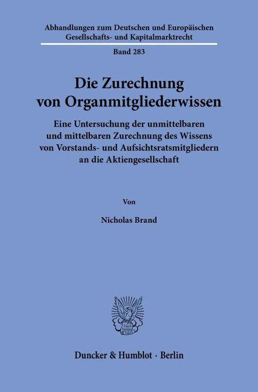 Die Arbeit beleuchtet ein Kernproblem des Aktienrechts: Wann wird das Wissen von Vorstands- und Aufsichtsratsmitgliedern der Gesellschaft zugerechnet? Sie zeigt: Handelt ein Vorstandsmitglied selbst, muss sich die Gesellschaft sein Wissen unmittelbar zurechnen lassen - pflichtenbasierte Zurechnungssysteme können in diesen Fällen keine Rolle spielen. Geht es um unbeteiligte Vorstandsmitglieder, greift nur eine mittelbare Zurechnung über Wissensorganisationspflichten, dogmatisch allein überzeugend begründet durch den Grundsatz der Gesamtverantwortung. Für den Aufsichtsrat gilt: Nur das Wissen des Plenums oder vertretungsbefugter Ausschüsse zählt - nicht das einzelner Mitglieder. Die Arbeit zeigt aber auch Fälle auf, in denen es nicht überzeugt, die Zurechnung des Wissens von Vorstands- und Aufsichtsratsmitgliedern getrennt zu betrachten. Nimmt der Aufsichtsrat Einfluss auf den Vorstand, können die Organe eine für die Wissenszurechnung bedeutsame Einheit bilden.