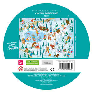 Mooie ronde box met boekje en giga puzzel van 30 stukjes. Het boekje is van hard stevig karton met daarin een rijmend verhaaltje. Afmetingen 62 x 45 cm + poster! Leeftijd 3+