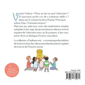Qu’est-ce que la Présence Réelle ? Jésus est-il vraiment là dans l’hostie ? Pourquoi adorer et comment ? Avec des explications simples et adaptées à leur âge, ce livre aux jolies illustrations de Laetitia Zink explique aux enfants le mystère de l’adoration pour qu’ils puissent, à leur tour, entrer dans ce dialogue d’amour avec Jésus. La collection « Explique-moi… » accompagne les enfants de 4 à 6 ans dans leur découverte des beautés du mystère de la foi et de l’histoire sainte.