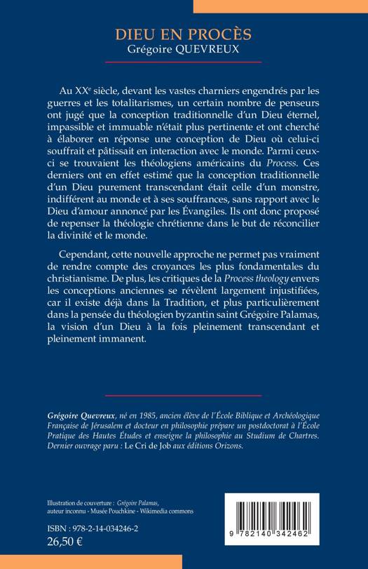 Au XXe siècle, devant les vastes charniers engendrés par les guerres et les totalitarismes, un certain nombre de penseurs ont jugé que la conception traditionnelle d'un Dieu éternel, impassible et immuable n'était plus pertinente et ont cherché à élaborer en réponse une conception de Dieu où celui-ci souffrait et pâtissait en interaction avec le monde. Parmi ceux-ci se trouvaient les théologiens américains du Process. Ces derniers ont en effet estimé que la conception traditionnelle d'un Dieu purement transcendant était celle d'un monstre, indifférent au monde et à ses souffrances, sans rapport avec le Dieu d'amour annoncé par les Évangiles. Ils ont donc proposé de repenser la théologie chrétienne dans le but de réconcilier la divinité et le monde. Cependant, cette nouvelle approche ne permet pas vraiment de rendre compte des croyances les plus fondamentales du christianisme. De plus, les critiques de la Process theology envers les conceptions anciennes se révèlent largement injustifiées, car il existe déjà dans la Tradition, et plus particulièrement dans la pensée du théologien byzantin saint Grégoire Palamas, la vision d'un Dieu à la fois pleinement transcendant et pleinement immanent.