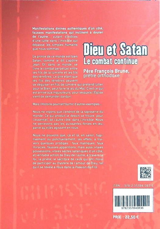 Le prince de ce monde est bien Satan, comme le dit L’Apôtre Jean. Et, dans ce monde se livre le combat perpétuel entre les fils de la lumière et les fils des ténèbres. Le pire étant que les fils des ténèbres peuvent se déguiser en fils de lumière qui prétendent lutter pour le Bien, peuvent faire le jeu du Mal. C’est ce qui est arrivé aux Inquisiteurs, pour lesquels l'Église vient de demander pardon. Mais l’Histoire pourrait fournir d'autres exemples… Nous ne voyons que l’endroit de la tapisserie du monde. Ce qui produit le dessin se trouve, pour l’essentiel, de l’autre côté, dans l’invisible. Nous ne percevons pas les puissantes forces en jeu parce qu'elles agissent en nous. Nous ne pouvons que, çà et là, en saisir, fugitivement ou ponctuellement, les effets à travers quelques prodiges : faux mystiques, faux miracles, fausses apparitions, mais aussi vraies possessions, vraies sectes sataniques d'un côté et véritable action de Dieu de l’autre, à travers la foi, la prière, le sacrifice de ceux qui ont choisi de participer au mystère de l’amour de Dieu, tel qu'il se révèle à nous dans la Passion du Fils.