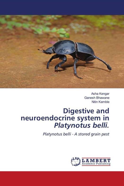 The stored grain pest beetles are economically important as they disturb the human product directly. Beetle Platynotus belli. Belonging to Tenebrionidae is rapidly spreading insect and destroys the stored product in larger areas.Platynotus belli is a black stout ground beetles belongs to family tenebrionidae, order coleoptera & commonly called as 'Pengul'. It is a stored grain pest, abundantly found is stores & granaries. The life cycle of P. belli complete with 4 stages of development i.e. egg, larva, pupa and adult. Both the larval and adult forms are harmful & destroys the stored grains.The book includes the details of Digestive and Neuroendocrine system of Platynotus belli. which would be helpful in control measure of this particular pest.