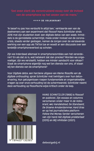 Voor Digitale detox, een herziene uitgave van Kleine filosofie van de digitale onthouding, sprak Schnitzler met twintigers over hun detoxervaring. Hun getuigenissen roepen fundamentele en ongemakkelijke vragen op over onze verhouding tot de schermwereld. Schnitzler neemt deze verhouding op filosofische wijze kritisch onder de loep.
