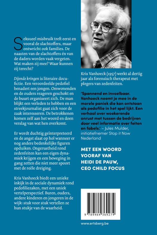 'Dijende kringen' is literaire docufictie. Een veroordeelde pedofiel benadert een jongen. Omwonenden en de ouders reageren geschokt en de buurt organiseert zich. De man blijkt een verleden te hebben en een streekjournalist gaat zich voor de zaak interesseren. De betrokkenen komen zelf aan het woord en doen verslag van wat hen overkomt. Er wordt duchtig geïnterpreteerd en de angst slaat op hol wanneer er nog andere bedenkelijke figuren opduiken.
