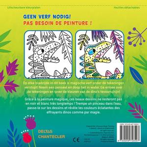 Geen verf nodig! Op elke bladzijde in dit boek is magische verf onder de tekeningen verstopt! Neem een penseel en doop het in water. Ga ermee over de tekeningen en tover de kleuren van de dino's tevoorschijn! 24 uitscheurbare kleurplaten Pas besoin de peinture ! Grâce à la peinture magique, ces beaux dessins ne resteront pas en noir et blanc très longtemps ! Trempe un pinceau dans l'eau, passe-le sur les dessins et révèle les couleurs éclatantes des effrayants dinos comme par magie. 24 dessins détachables