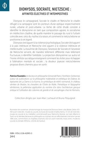 Dionysos s’est aguerri à la violence psychologique, Socrate s’est aguerri à la paix intérieure et Nietzsche s’est aguerri à la violence intérieure et intellectuelle. La boulimie de Dionysos, l’anorexie de Socrate et l’anorexie de Nietzsche servent, de manière tellement différente mais tellement fructueuse, à identifier l’antidote. La projection dionysienne sur autrui et l’ironie nihiliste socratique enseignent comment les éviter pour échapper à l’aliénation mentale et sociale ; la douleur joyeuse nietzschéenne propose divers chemins pour en sortir.