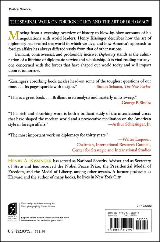 Diplomacy stands as the culmination of a lifetime of diplomatic service and scholarship. It is vital reading for anyone concerned with the forces that have shaped our world today and will impact upon it tomorrow.