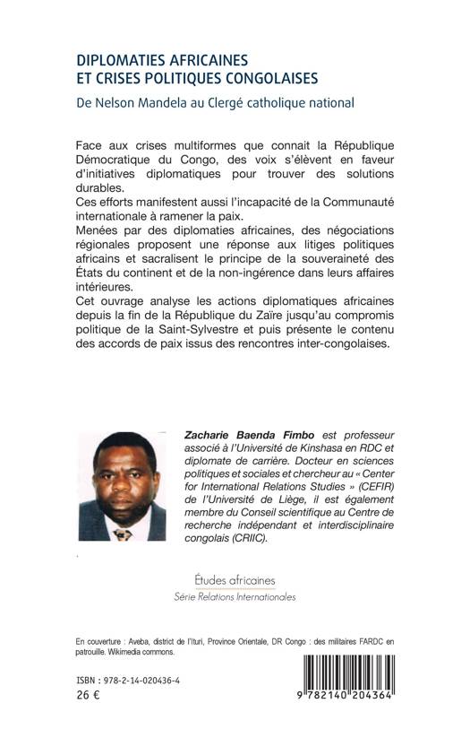 Face aux crises multiformes que connait la République Démocratique du Congo, des voix s'élèvent en faveur d'initiatives diplomatiques pour trouver des solutions durables. Ces efforts manifestent aussi l'incapacité de la Communauté internationale à ramener la paix. Menées par des diplomaties africaines, des négociations régionales proposent une réponse aux litiges politiques africains et sacralisent le principe de la souveraineté des États du continent et de la non-ingérence dans leurs affaires intérieures. Cet ouvrage analyse les actions diplomatiques africaines depuis la fin de la République du Zaïre jusqu'au compromis politique de la Saint-Sylvestre et puis présente le contenu des accords de paix issus des rencontres inter-congolaises.