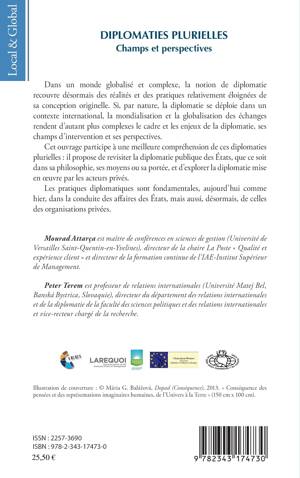 Dans un monde globalisé et complexe, la notion de diplomatie recouvre désormais des réalités et des pratiques relativement éloignées de sa conception originelle. Si, par nature, la diplomatie se déploie dans un contexte international, la mondialisation et la globalisation des échanges rendent d'autant plus complexes le cadre et les enjeux de la diplomatie, ses champs d'intervention et ses perspectives. Cet ouvrage participe à une meilleure compréhension de ces diplomaties plurielles : il propose de revisiter la diplomatie publique des États, que ce soit dans sa philosophie, ses moyens ou sa portée, et d'explorer la diplomatie mise en oeuvre par les acteurs privés.