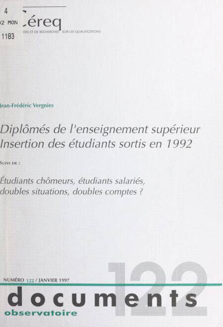 L'insertion La hausse du nombre de sortants de l'enseignement supérieur s'accentue, le nombre d'emplois offerts stagne. De ce fait, certains jeunes diplômés de l'enseignement supérieur sont maintenant plus confrontés au chômage ; même si leur insertion reste plus favorable que celle des sortants de l'enseignement secondaire. La précarité des premiers emplois se développe et l'accès à des postes de cadre devient moins facile en début de carrière. Les salaires des diplômés de 1992 diminuent et retrouvent leur niveau du milieu des années 80. Les titulaires de DUT et de BTS sont les plus touchés par la dégradation. Les diplômés des écoles d'ingénieurs bénéficient toujours de l'insertion la plus favorable, malgré un accès à l'emploi moins rapide. Étudiants chômeurs étudiants salariés ? Les enquêtes de cheminement professionnel du Céreq recueillent, sur une période de plus de deux ans, des informations sur la situation mois par mois des sortants du système éducatif. Le « calendrier mensuel » sur une telle période est une des grandes originalités de ces enquêtes. L'enquête de 1994 sur les sorties de l'enseignement supérieur comporte en outre un module de questions permettant de saisir le chômage au sens du Bureau International du Travail. Confronter le calendrier mensuel et ce module permet de cerner les limites du codage des individus dans des situations uniques : chômeur, étudiant.... Parcours de formation et parcours professionnel se superposent, ils ne se succèdent pas nécessairement. Les études coexistent parfois avec la recherche d'un emploi, l'emploi... ou les deux.