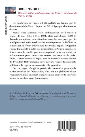 De nombreux ouvrages ont été publiés en France sur le drame rwandais. Mais très peu ont été rédigés par des témoins directs. Jean-Michel Marlaud était ambassadeur de France à Kigali de mai 1993 à l'été 1994, alors que depuis 1990 le Rwanda connaissait une situation nouvelle, marquée par le multipartisme mais aussi par les conséquences de l'offensive lancée par le Front Patriotique Rwandais depuis l'Ouganda voisin. Il a assisté à la fin des négociations d'Arusha supposées faire cesser le conflit, puis a été impliqué dans les tentatives infructueuses pour mettre en oeuvre les accords de paix. Enfin, il était présent à Kigali lors de l'attentat contre l'avion du Président Habyarimana, suivi par une vague d'assassinats politiques, la reprise des combats et le génocide. Cet ouvrage, rédigé à partir de souvenirs personnels et des archives de l'ambassade, n'est pas un plaidoyer ni un réquisitoire, mais un effort d'analyse pour essayer de tirer des leçons de ces tragiques évènements.