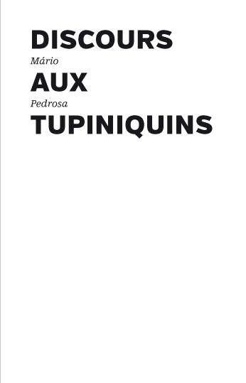 Discours aux Tupiniquins est l'un des textes les plus profonds pour comprendre le point de vue de Mário Pedrosa, finalement très critique, sur les développements de l'art moderne occidental et son espoir d'un art nouveau, fruit de ce qu'il appelle encore le tiers-monde. S'il emploie le mot postmoderne, ce n'est pas dans le sens de Jean-François Lyotard, et pourtant, quelques années à peine avant La Condition postmoderne (1979), Pedrosa affirme que le moderne et le primitif, le savoir savant et le savoir populaire ont cessé de s'opposer.