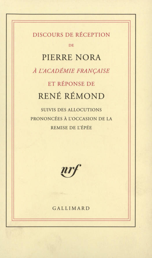 Pierre Nora a été élu à l'Académie française à la place laissée vacante par la mort de Michel Droit. Ce discours a été prononcé à l'occasion de sa prise de séance le jeudi 6 juin 2002. Après la réponse de René Rémond, les allocutions prononcées à l'occasion de la remise de l'épée l'ont été par Geneviève Barrier, Mona Ozouf, Antoine Gallimard, Jacques Revel, Alain Decaux et, in fine, Pierre Nora.