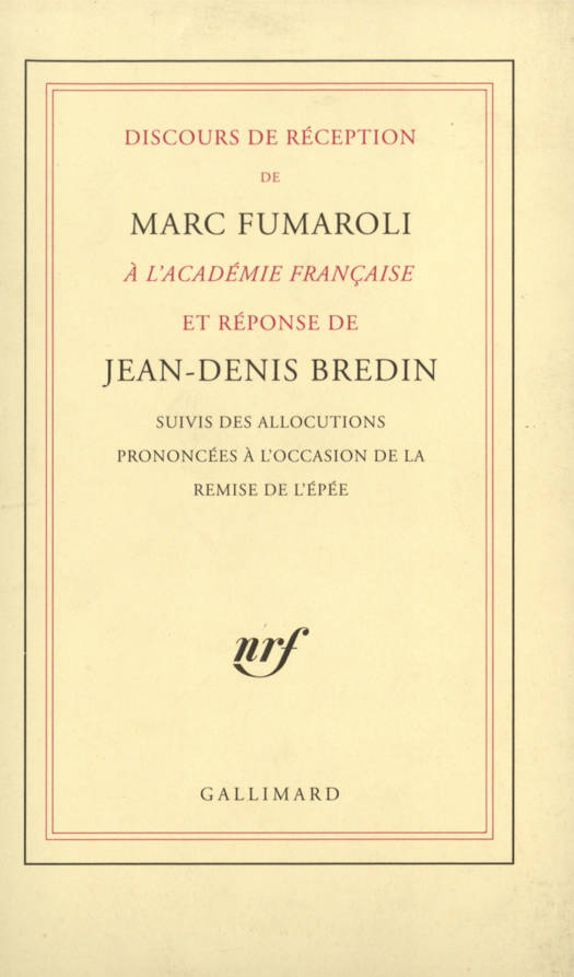 M. Marc Fumaroli a été élu à l'Académie française à la place laissée vacante par la mort de M. Eugène Ionesco. Ce discours a été prononcé à l'occasion de sa prise de séance le jeudi 25 janvier 1996. Après la réponse de Jean-Denis Bredin, les allocutions prononcées à l'occasion de la remise de l'épée l'ont été par Jean d'Ormesson, Roland Mortier, René Pomeau et, in fine, Marc Fumaroli.