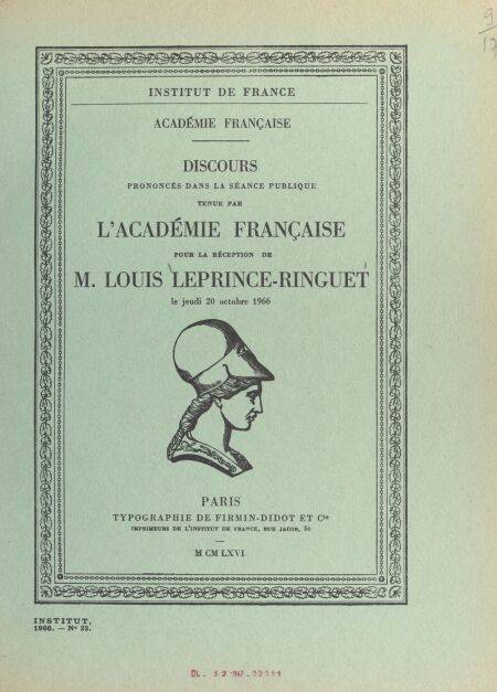 5. Discours pour la réception de M. Louis Leprince-Ringuet, le jeudi 20 octobre 1966