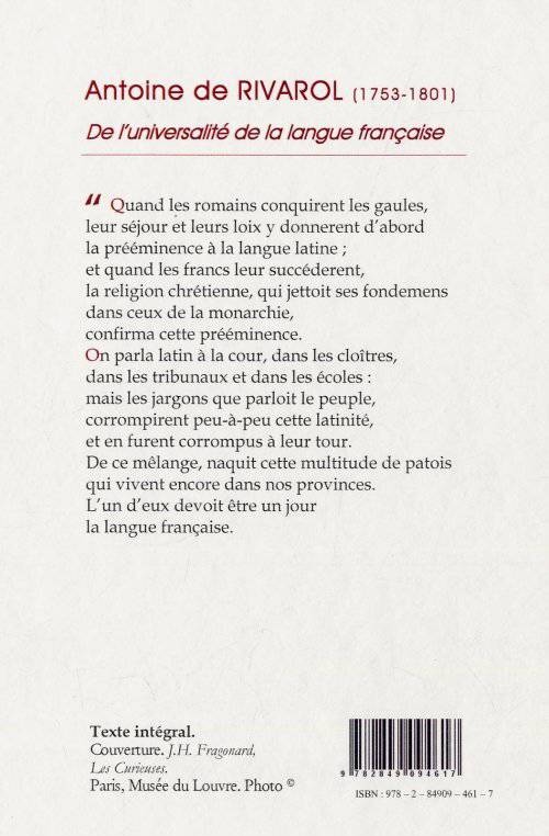 « Quand les romains conquirent les gaules, leur séjour et leurs loix y donnerent d'abord la prééminence à la langue latine ; et quand les francs leur succéderent, la religion chrétienne, qui jettoit ses fondemens dans ceux de la monarchie, confirma cette prééminence.
