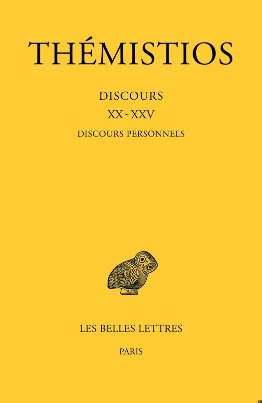 Après trois volumes axés sur la « politique », les discours « personnels » font connaître plus intimement l’orateur-philosophe païen Thémistios, grâce à l’oraison funèbre de son père Eugénios et de son attachement au néoplatonisme (XX) ou à travers la polémique contemporaine (XXI : Expert ou Philosophe – XXIII : Sophiste), quoique la philosophie spéculative n’ait pas ici perdu ses droits (XXII : De l’amitié), ni la rhétorique (XXV : Sur l’improvisation) ou la critique littéraire (XXIV : Exhortation à se tourner vers la philosophie). La prose demeure subtile, bien qu’un peu moins tendue que dans les tomes précédents, et la traduction, assortie d’un commentaire détaillé, a essayé d’en exprimer toutes les nuances.